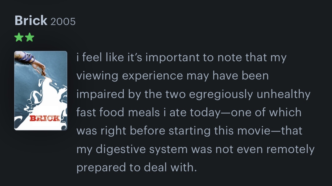 I’ve watched over 1,000 movies since 2017. I’ve written something about nearly all of them. You can keep up with more of my inspired cinematic analysis on Letterboxd.